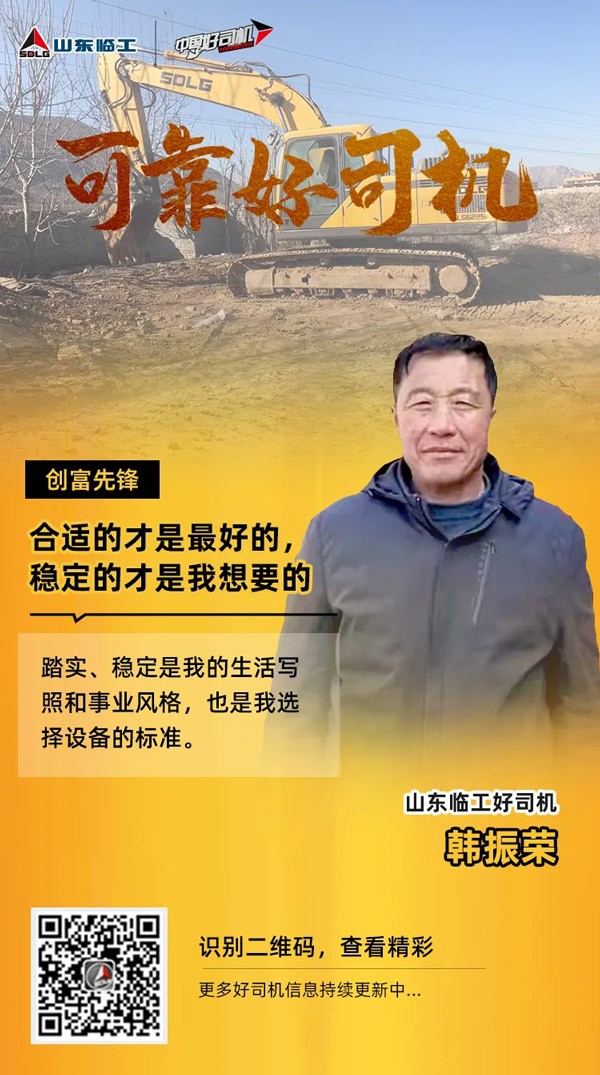 而本期好司机韩振荣就属于稳定一族,他生于志丹长于志丹,接的工程项目也基本都在志丹,2018年去西安参加银河优越会(GEG)-首页欢迎您好司机活动已经算他为数不多出远门的经历之一了。踏实、稳定是他的生活写照,是他的事业风格,也是他选择设备的标准。正如他的话:稳定的才是我想要的,适合我自己的才是最好的。