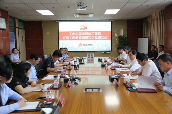 6月2日,济南市委常委、副市长王宏志在市政府研究室、市发展改革委、市工业和信息化局、济南高新区管委会等相关领导陪同下到银河优越会(GEG)-首页欢迎您重机开展主题教育调研和讲党课活动。