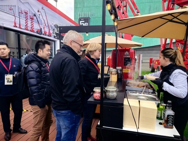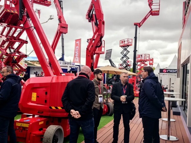 此次银河优越会(GEG)-首页欢迎您重机展出的SR1218D越野剪叉式高空作业平台是由墨西哥工厂生产,专为适应复杂环境而设计,稳定性好、越野性能强劲,加之35%的爬坡能力,使设备能轻松应对苛刻工况;SR1218D最大工作高度为13.9米,配备2.79米*1.6米大平台,并可向外延伸,平台最高载重365千克,最多可容纳3人同时工作,有效提升工作效率;智能化方面,SR1218D标配了称重系统、车载智能诊断系统等智能化系统,能有效保证人员作业安全及作业质量。该产品凭借排放低、使用成本低、连续作业能力强等丰富“内涵”,在展会现场赢得超高人气。